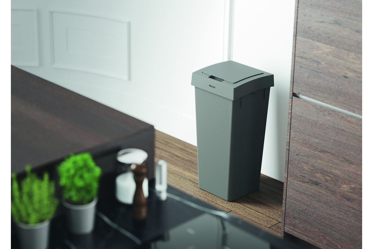 Der schwenkbare Deckel mit Gegengewicht schliesst sich automatisch, wenn kleinere Abfallgüter mit der Push-Funktion entsorgt werden.