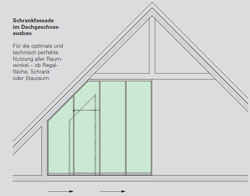 Lieferung aller Rahmenteile, Beschlagteile für Führung am Fachboden (bei Vollschräge) lose ohne Füllung.