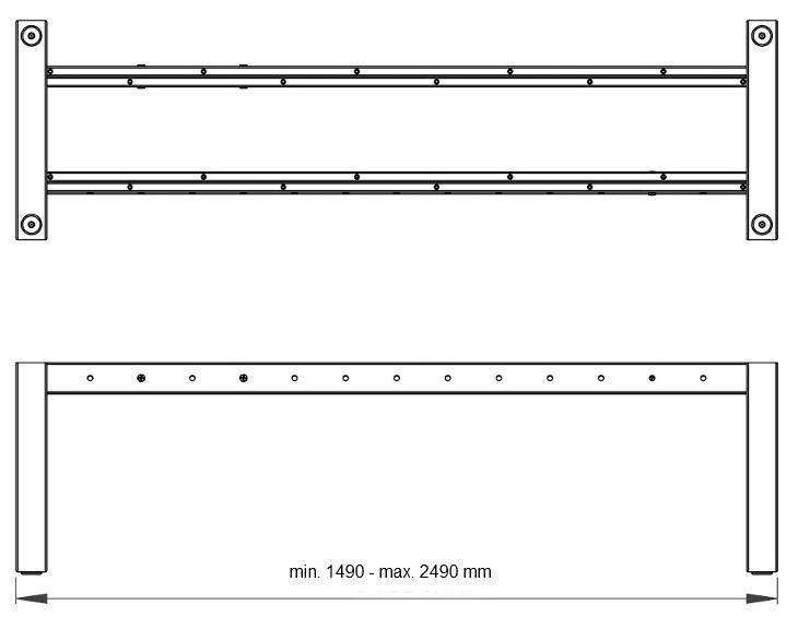 Höhe 415mm, Breite 430mm, Länge von 1490-2490mm verstellbar. Lieferung ohne Auflage