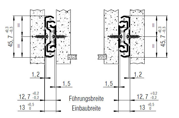 Für seitliche Schubladenmontage, Einbaubreite 13,0mm (x2), dynamische Belastung bis 60kg.