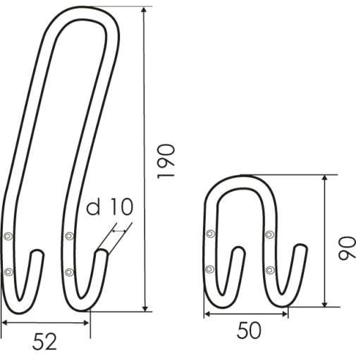 Mantelhaken Höhe 90mm, Ausladung 50mm.