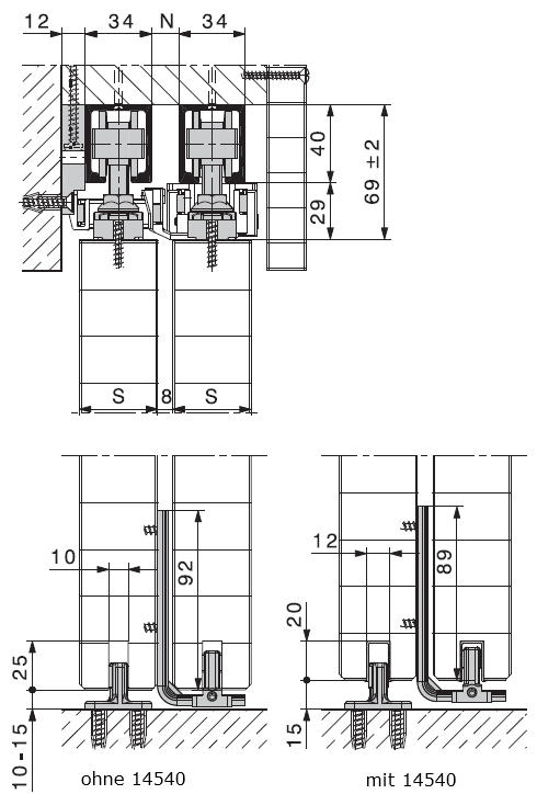 Beschlagset HAWA-Telescopic 40/4 für 4 Türen Breite 500-1200mm, Gewicht bis 40kg,