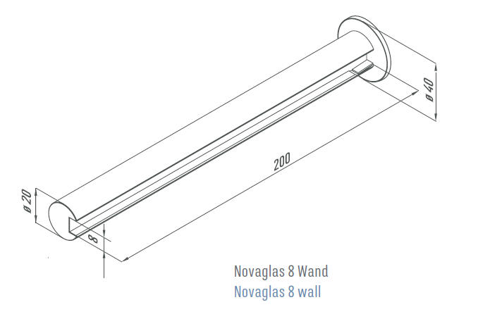 Für Wandmontage inkl. Montagematerial, inkl. Glas Float klar 8mm, Tiefe 200mm, Kanten poliert, Länge xxxmm.