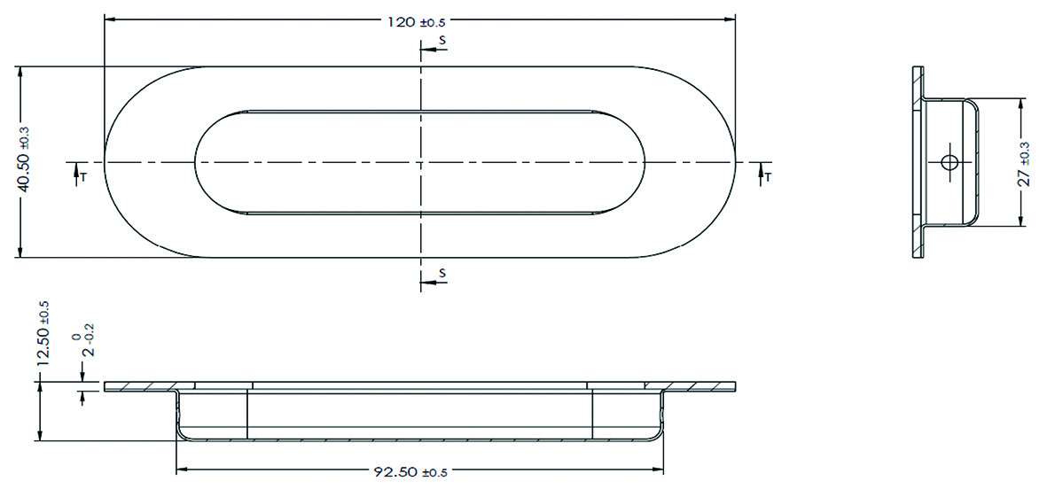 Außendurchmesser 40x120mm, Einlassmaße 28x92x11mm.