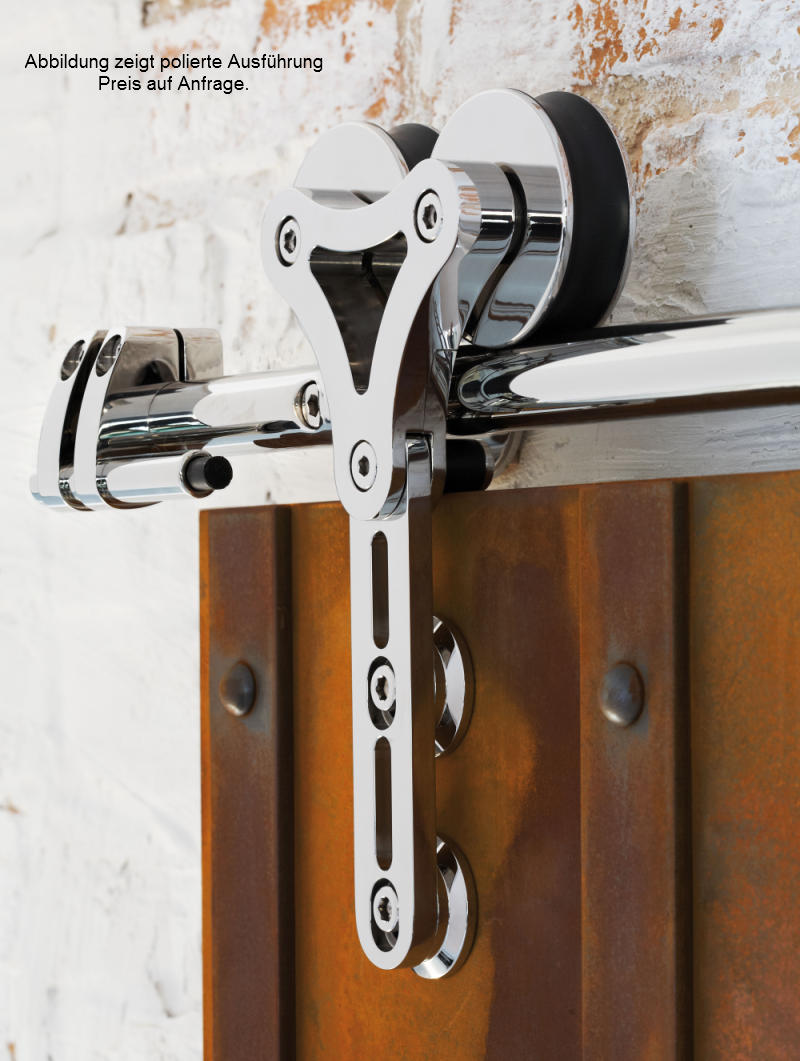 Schiebetürbeschlag aus feinstem massivem Edelstahl Korn 600 fein geschliffen, bis Türgewicht 250kg: