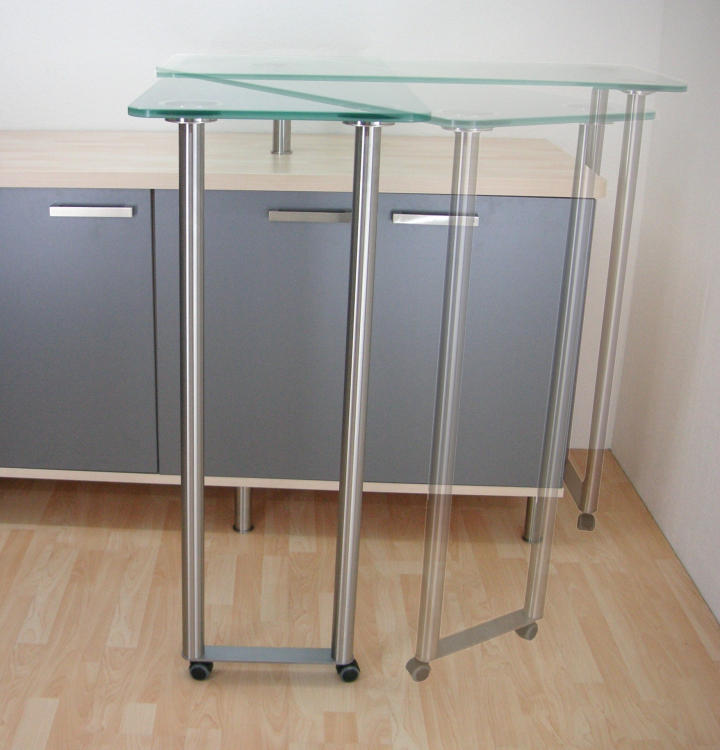 SchwenkBar "Turn Around" drehbar, bestend aus: Edelstahl-Rundrohr-Gestell mit Rollen und einer Barkonsole.