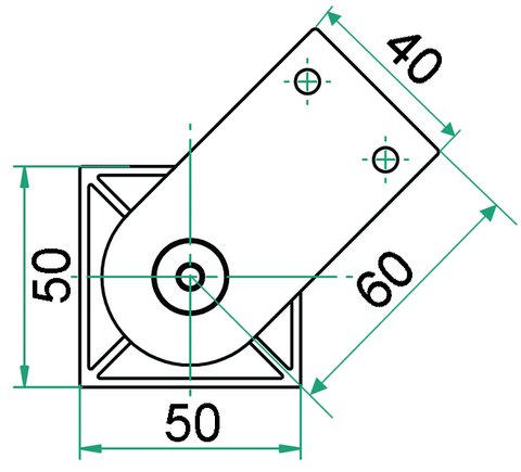 Sockelfuß Aluminum 50x50mm, Befestigungsplatte ~60x40mm inkl. Höhenverstellung.