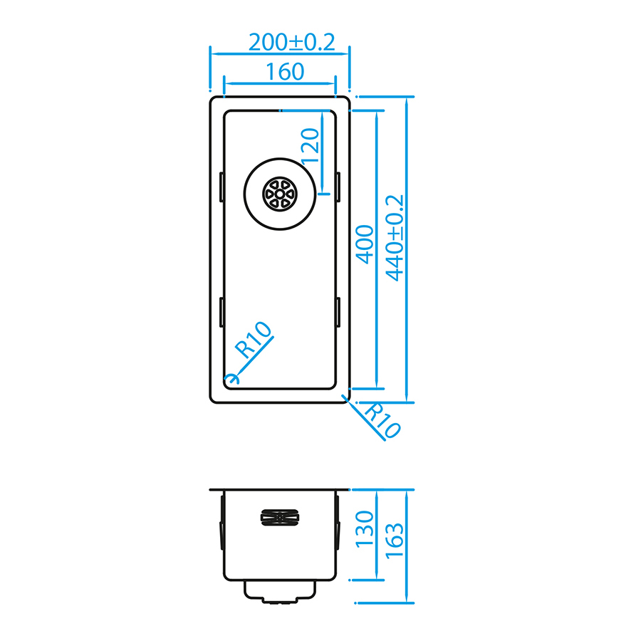 Spüle Edelstahl matt geschliffen, Eckradius 10mm