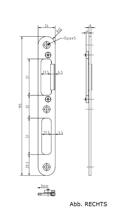 Anwendung: Schließblech für stumpf einschlagende Türen, einzufräsen, für Magnet-Schlösser geeignet,